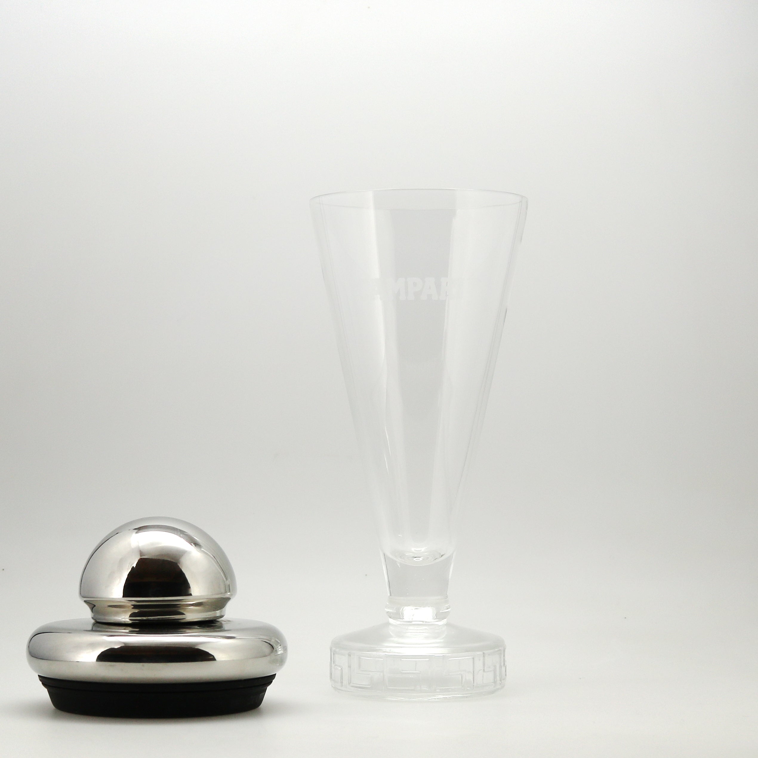 The shaker was originally developed for CAMPARI. A V-shaped shaker that ensures a perfect hold when shaking or pouring. Alberto Gozzi, who was also responsible for Ettore Sottsass' bar products, was also involved.