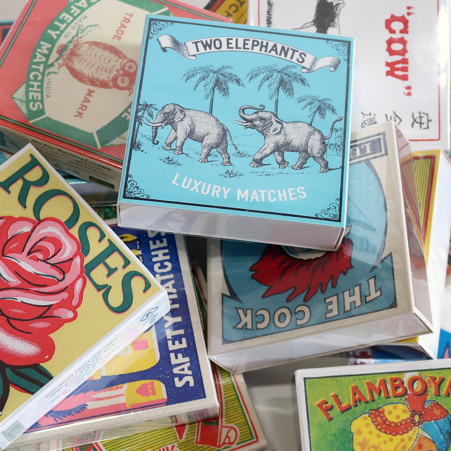 Oversized "Matchbox" matchboxes with a beautiful design from Great Britain. For candles, fireplace or BBQ. The VOGELHAUS has white (ignition) caps.