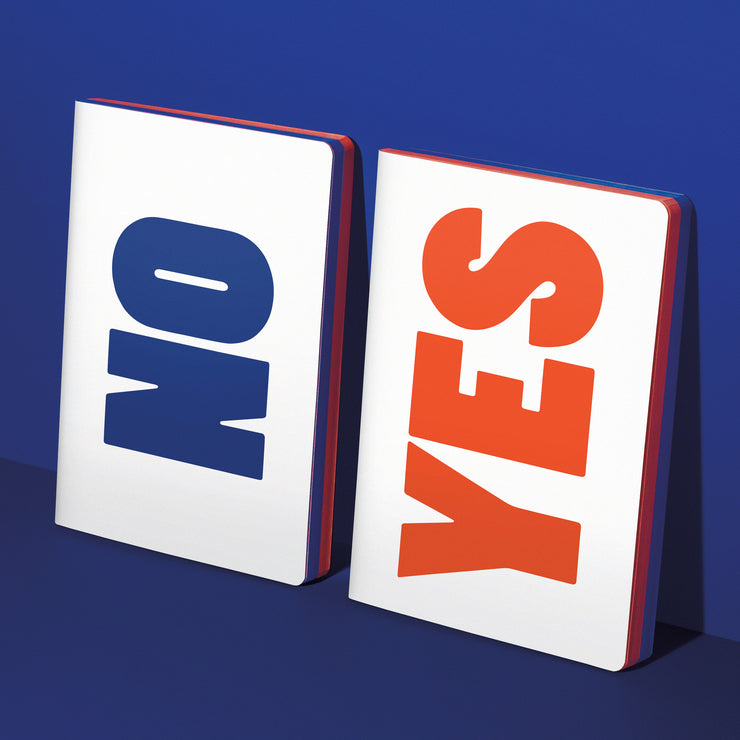 The YES - NO actually serves to ensure the correct use of this minimalist notebook: YES marks the title, NO the back of the book. A nice side effect: you can also use it as a voting card!