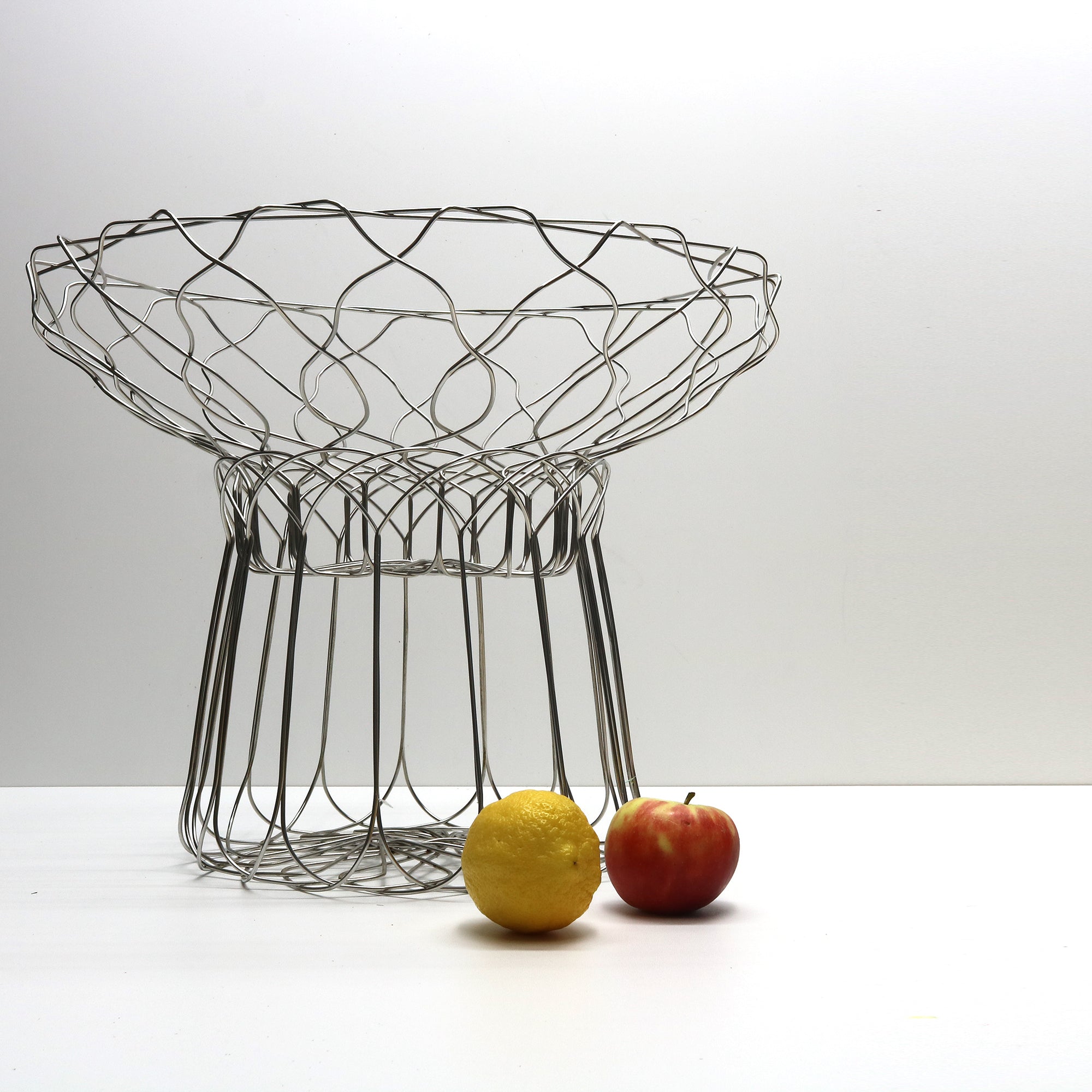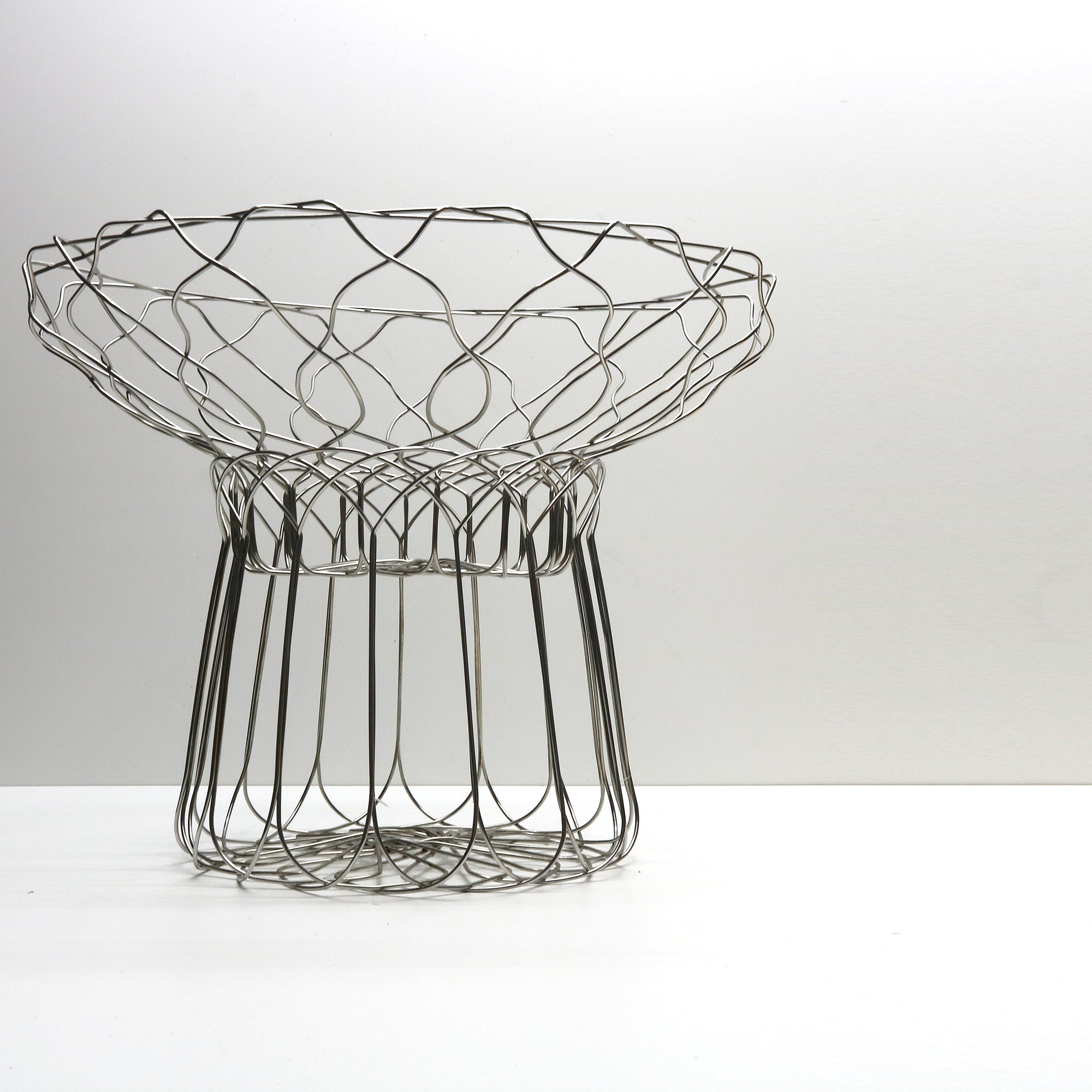 Spirogira ist eine Serie von Stahldrahtkörben, entworfen für ALESSI, die traditionellen Metalldraht auf moderne und verspielte Weise neu interpretiert. Die eleganten, radial geformten Stücke bestehen aus einem einzigen, durchgehenden Edelstahldraht. Der Zitruskorb und der große Tafelaufsatz lassen sich miteinander kombinieren.