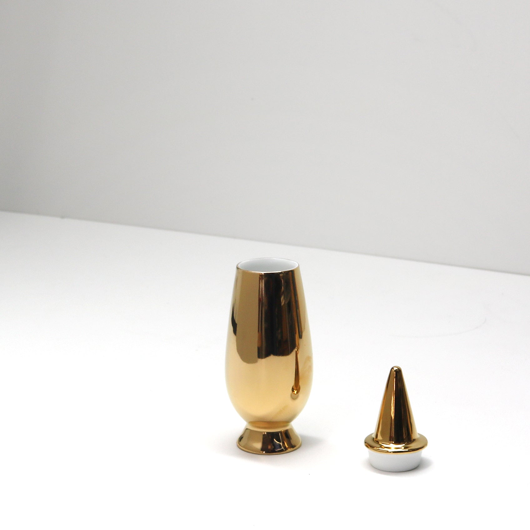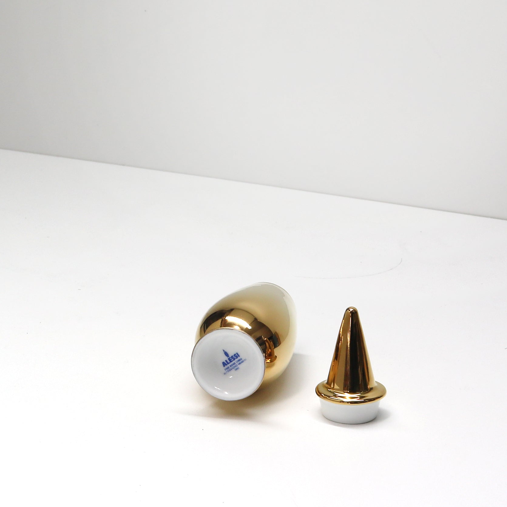 Die Vase wurde von Alessandro Mendini 1992 für das Projekt "100% MAKE UP" entworfen, der goldene Dekor (Nummer 58) stammt ebenso von Alessandro Mendini .