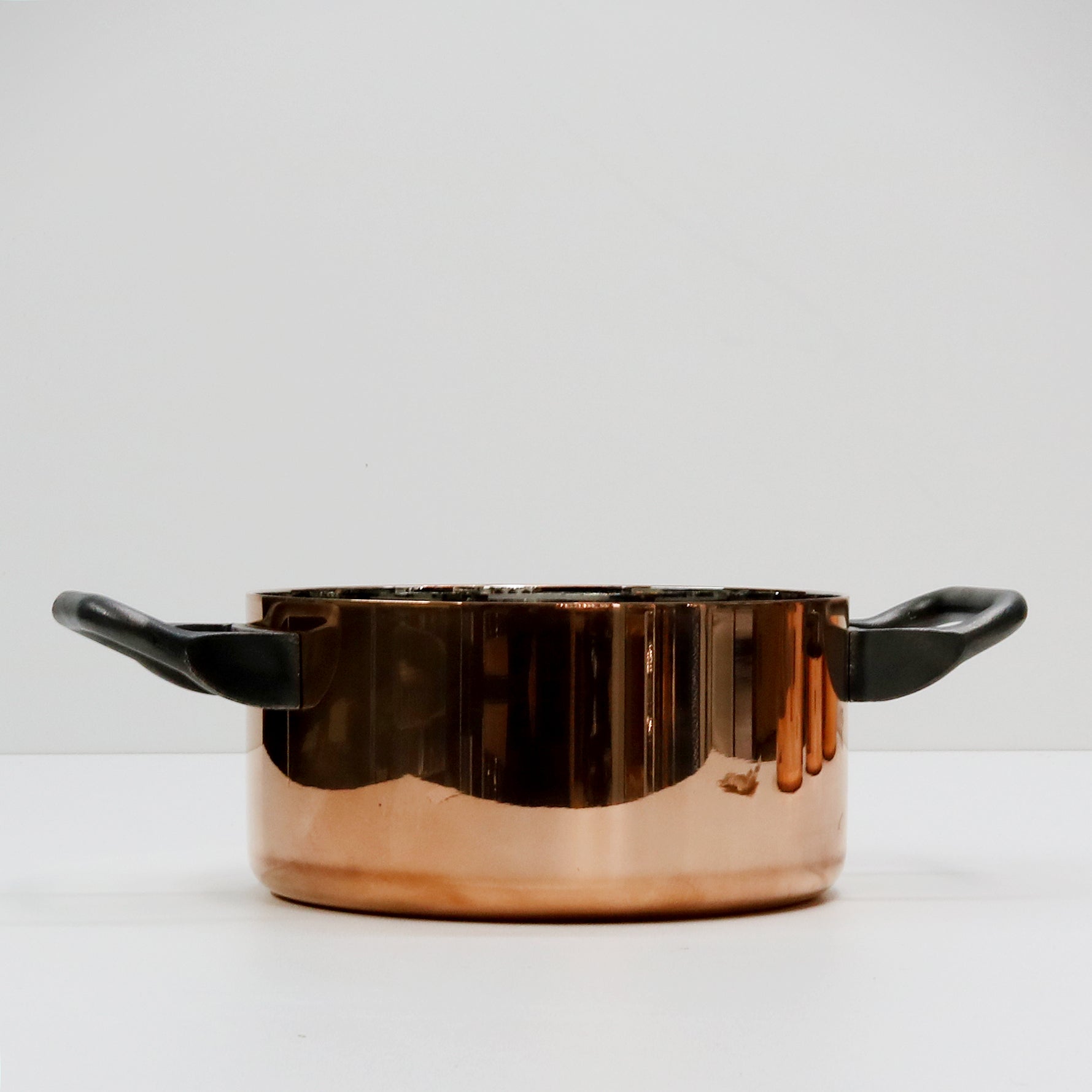 Diese Materialkombination vereint die hervorragende Wärmeleitfähigkeit des Kupfers mit der hygienischen und pflegeleichten Oberfläche des Edelstahls. So garantiert die Kasserolle höchste Funktionalität, Langlebigkeit und Präzision beim Kochen – ideal für anspruchsvolle Küchenprofis und Designliebhaber gleichermaßen.