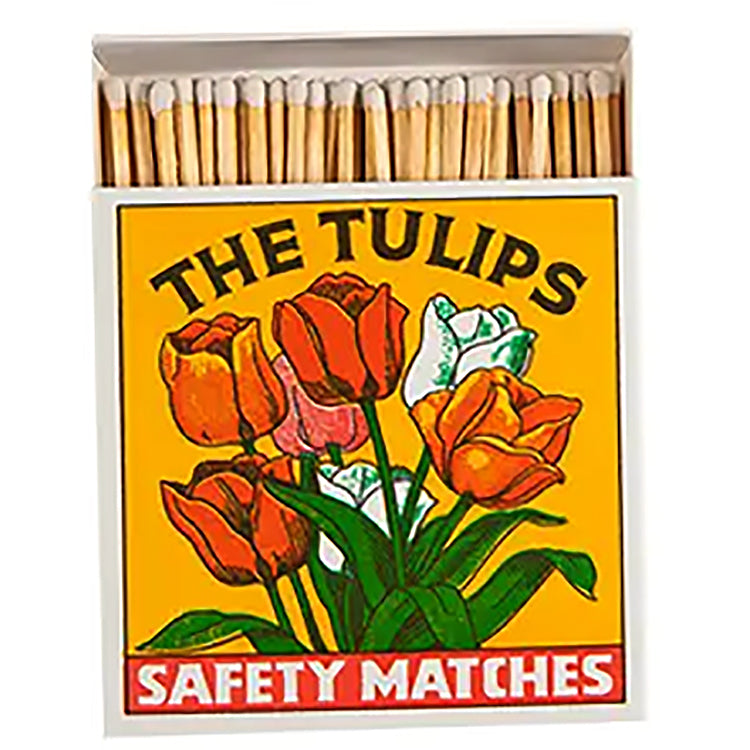 Übergroße Streichholzschachteln "Matchbox" mit schöner Gestaltung aus Großbritanien. Für Kerzen, Kamin oder BBQ. TULPEN hat weisse (Zünd)Kappen.