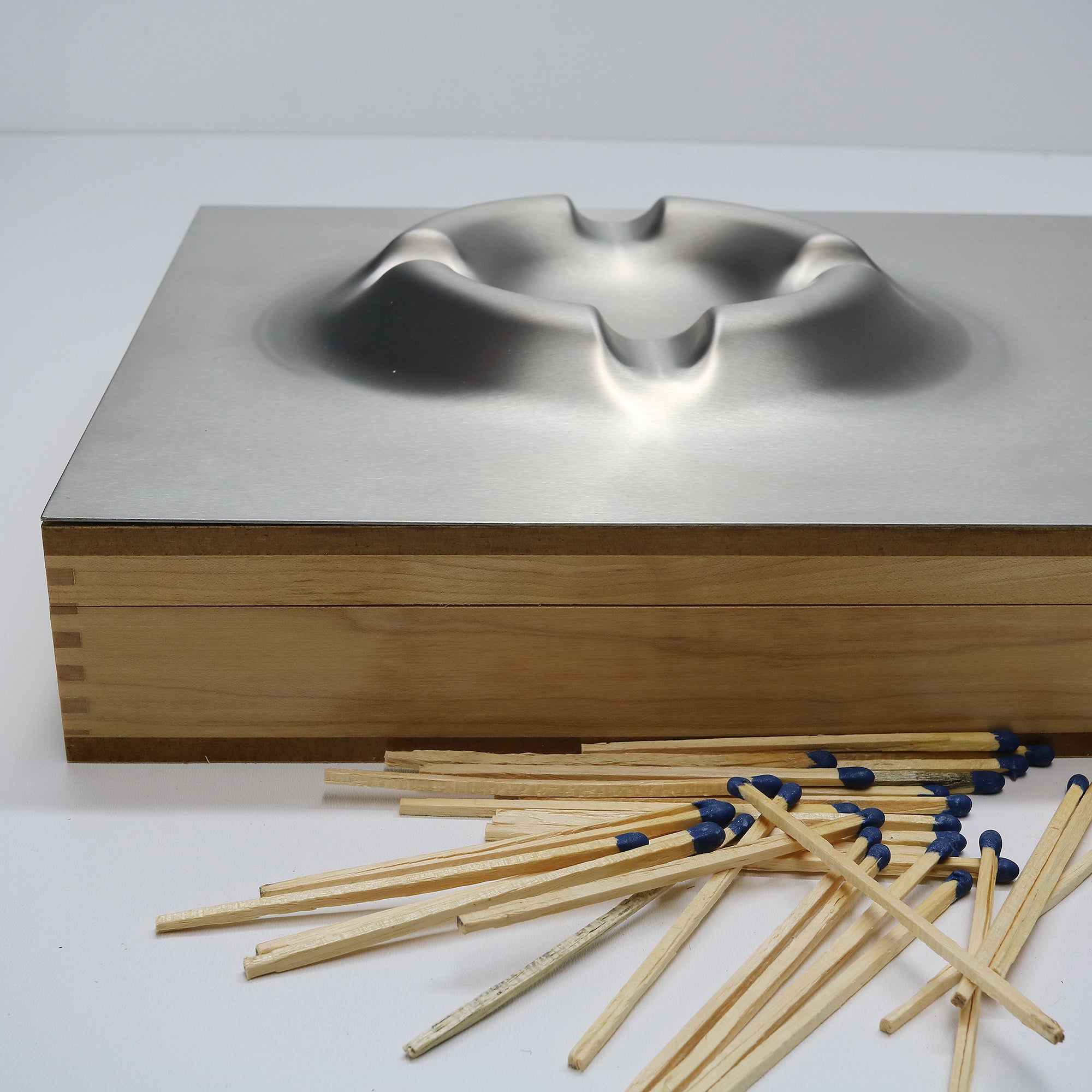Edelstahldeckel, gleichzeitig der Aschenbecher