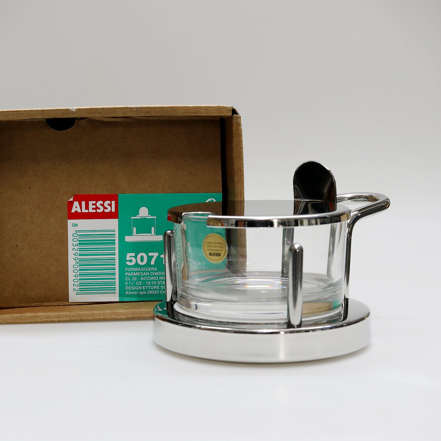 da war Herr Sottsass noch Industriedesigner für Olivetti und ALESSI, seit 1978 unverändert mit dem schweren Kristallglas in Produktion, die konnte ich nicht stehen lassen ... also wer noch keine Formaggiera hat sollte hier zugreifen :-)